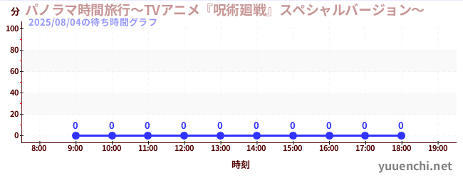 2025/08/04の待ち時間グラフ (パノラマ時間旅行~TVアニメ『呪術廻戦』スペシャルバージョン~)