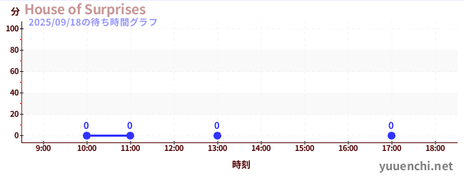 2025/09/18の待ち時間グラフ (House of Surprises)