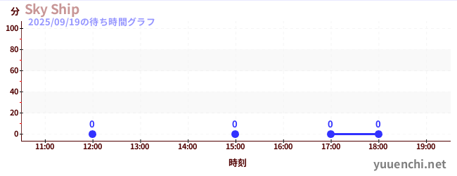 2025/09/19の待ち時間グラフ (Sky Ship)