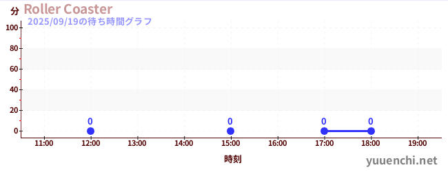 2025/09/19の待ち時間グラフ (Roller Coaster)