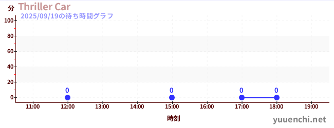 2025/09/19の待ち時間グラフ (Thriller Car)