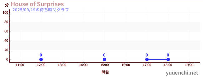 2025/09/19の待ち時間グラフ (House of Surprises)