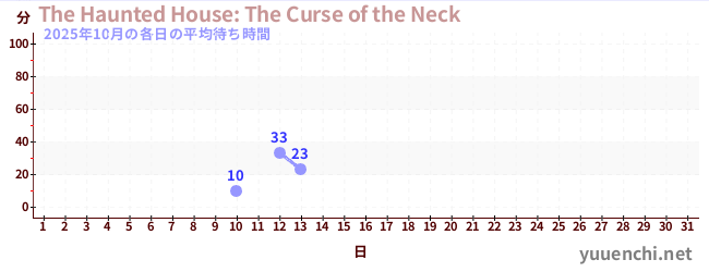 2025/10の一日平均待ち時間 (The Haunted House: The Curse of the Neck)