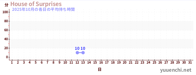 2025/10の一日平均待ち時間 (ビックリハウス®)