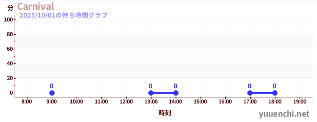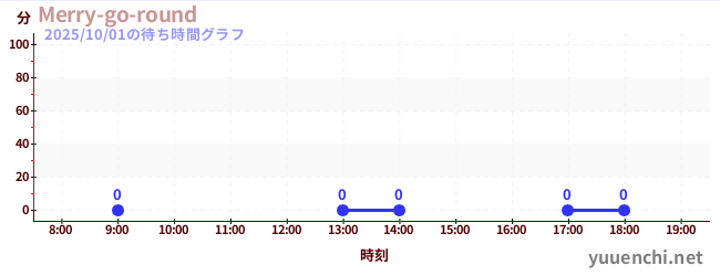 2025/10/01の待ち時間グラフ (メリーゴーランド)