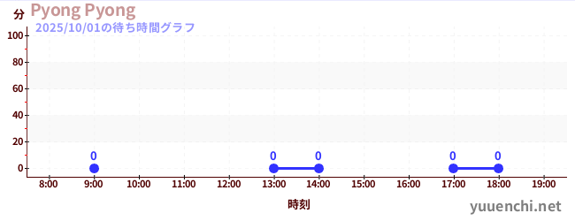 2025/10/01の待ち時間グラフ (Pyong Pyong)
