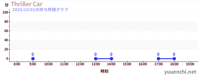 2025/10/01の待ち時間グラフ (Thriller Car)