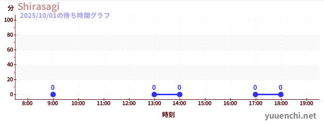 2025/10/01の待ち時間グラフ (Shirasagi)