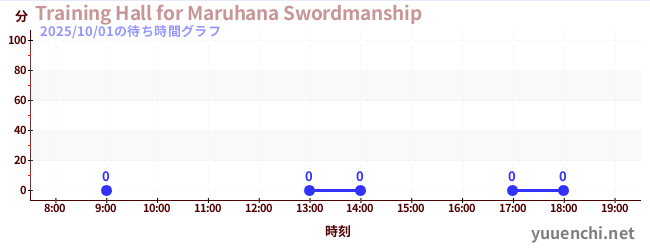 2025/10/01の待ち時間グラフ (Training Hall for Maruhana Swordmanship)