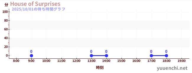 2025/10/01の待ち時間グラフ (House of Surprises)