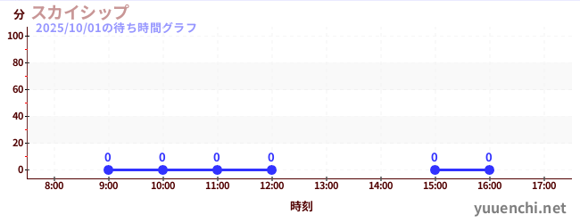 2025/10/01の待ち時間グラフ (スカイシップ)