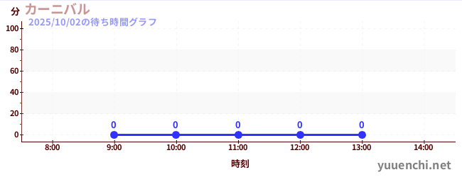 2025/10/02の待ち時間グラフ (メリーゴーランド)