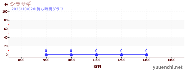 2025/10/02の待ち時間グラフ (Shirasagi)