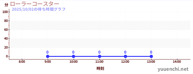 2025/10/02の待ち時間グラフ (ローラーコースター)