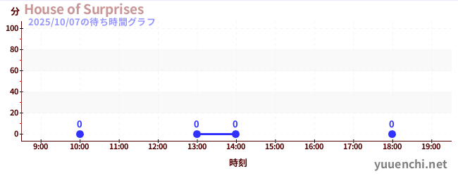 2025/10/07の待ち時間グラフ (House of Surprises)
