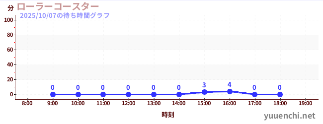 2025/10/07の待ち時間グラフ (ローラーコースター)