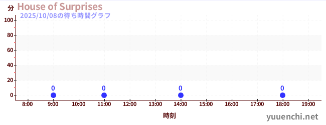 2025/10/08の待ち時間グラフ (House of Surprises)