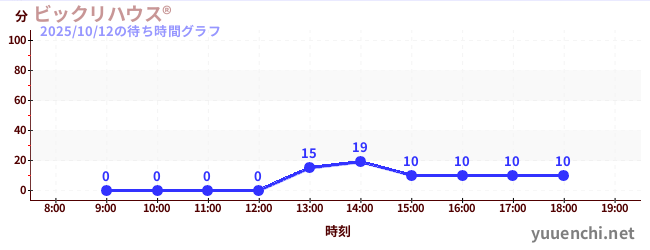 2025/10/12の待ち時間グラフ (ビックリハウス®)