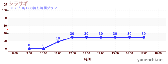 2025/10/12の待ち時間グラフ (Shirasagi)