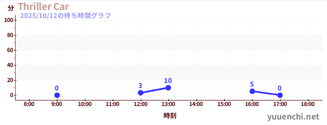 2025/10/12の待ち時間グラフ (Thriller Car)