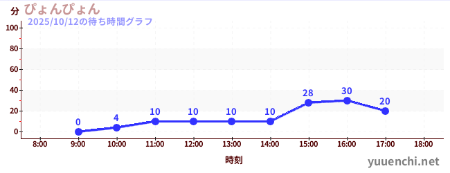 2025/10/12の待ち時間グラフ (ぴょんぴょん)
