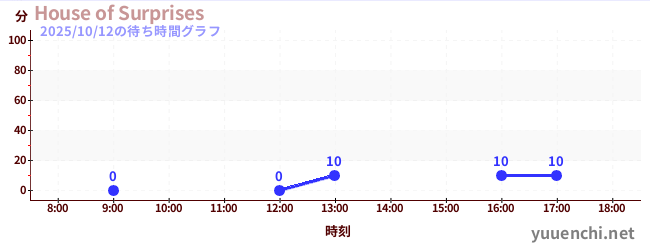 2025/10/12の待ち時間グラフ (House of Surprises)