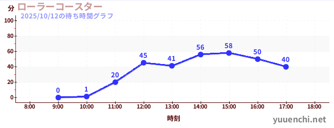 2025/10/12の待ち時間グラフ (ローラーコースター)