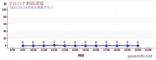 2025/10/14の待ち時間グラフ (マルハナ剣術道場)