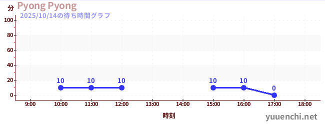 2025/10/14の待ち時間グラフ (Pyong Pyong)