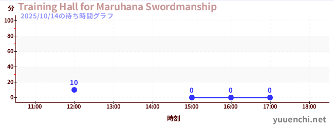 2025/10/14の待ち時間グラフ (Training Hall for Maruhana Swordmanship)