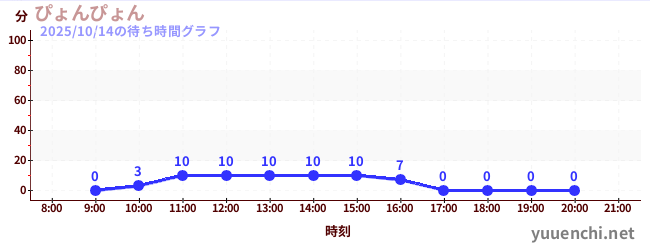 2025/10/14の待ち時間グラフ (ぴょんぴょん)