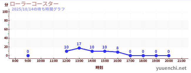 2025/10/14の待ち時間グラフ (ローラーコースター)