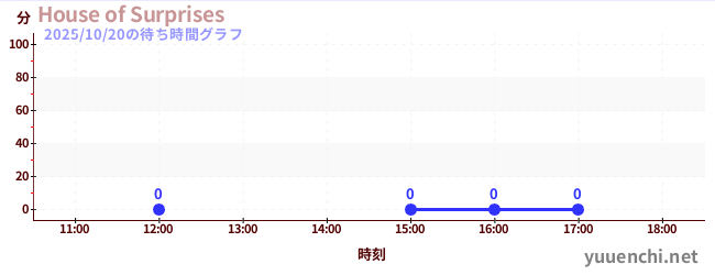 2025/10/20の待ち時間グラフ (House of Surprises)