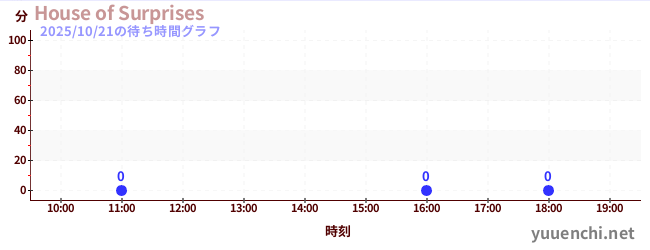 2025/10/21の待ち時間グラフ (House of Surprises)