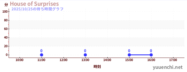 2025/10/25の待ち時間グラフ (House of Surprises)