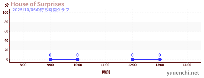 2025/10/06の待ち時間グラフ (House of Surprises)