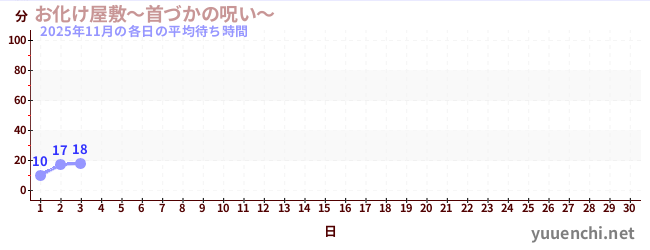 2025/11の一日平均待ち時間 (お化け屋敷~首づかの呪い~)