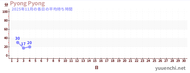 2025/11の一日平均待ち時間 (Pyong Pyong)