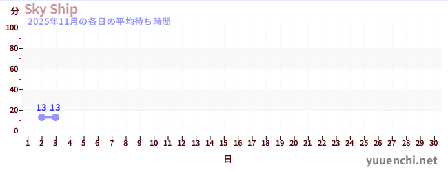 2025/11の一日平均待ち時間 (ヘリコプター)