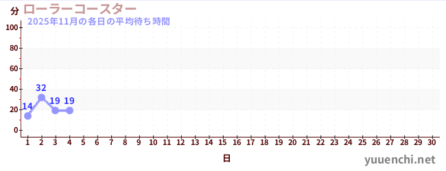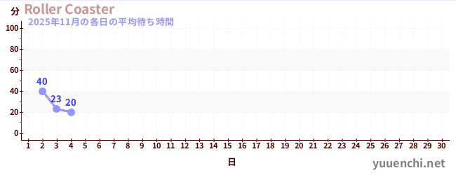 2025/11の一日平均待ち時間 (Roller Coaster)