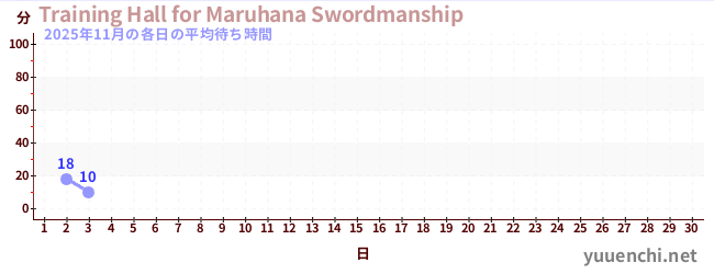 2025/11の一日平均待ち時間 (Training Hall for Maruhana Swordmanship)