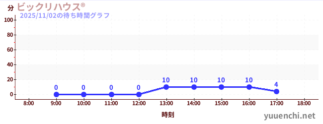 2025/11/02の待ち時間グラフ (ビックリハウス®)