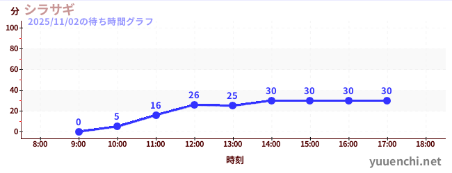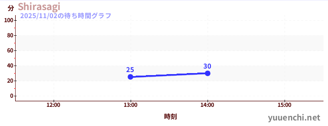 2025/11/02の待ち時間グラフ (Shirasagi)