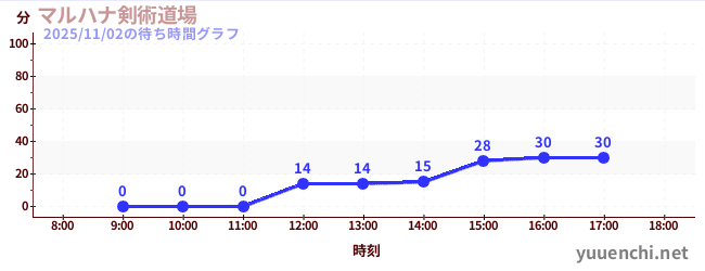 2025/11/02の待ち時間グラフ (マルハナ剣術道場)