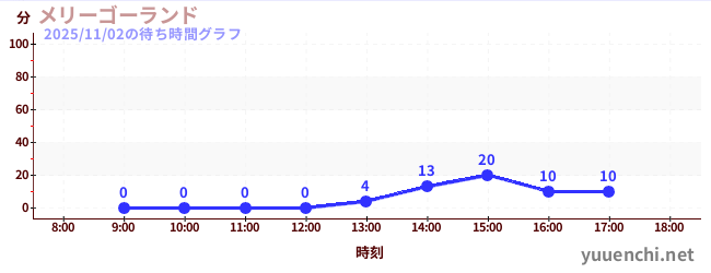 2025/11/02の待ち時間グラフ (メリーゴーランド)