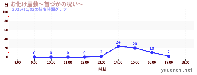2025/11/02の待ち時間グラフ (お化け屋敷~首づかの呪い~)