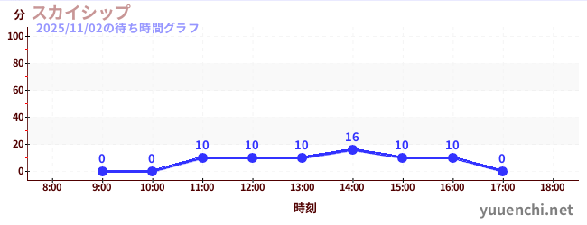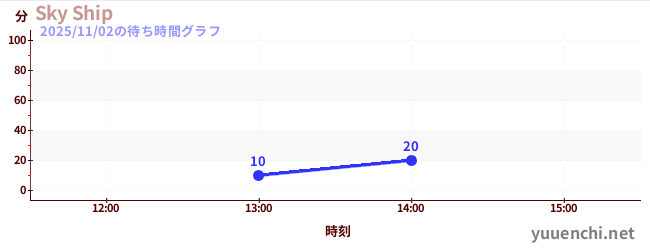 2025/11/02の待ち時間グラフ (Sky Ship)