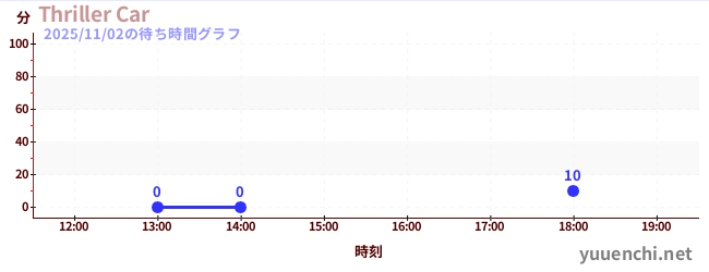2025/11/02の待ち時間グラフ (Thriller Car)