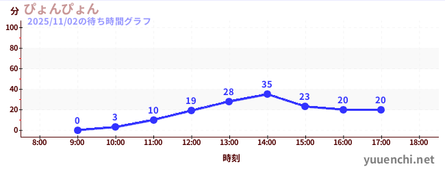 2025/11/02の待ち時間グラフ (ぴょんぴょん)