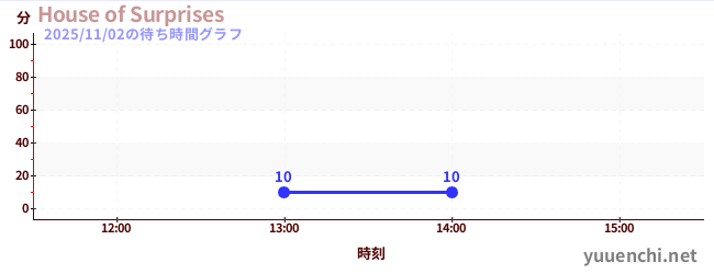 2025/11/02の待ち時間グラフ (House of Surprises)